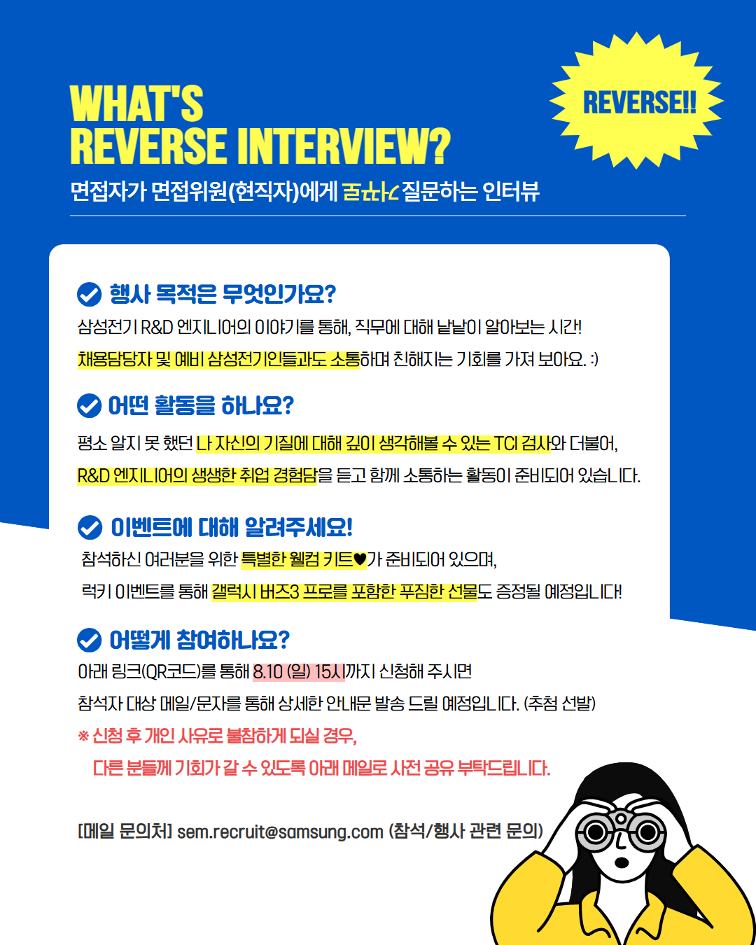 [삼성전기] 채용 관련 행사 활동 안내 (채용설명회 X 리버스인터뷰)