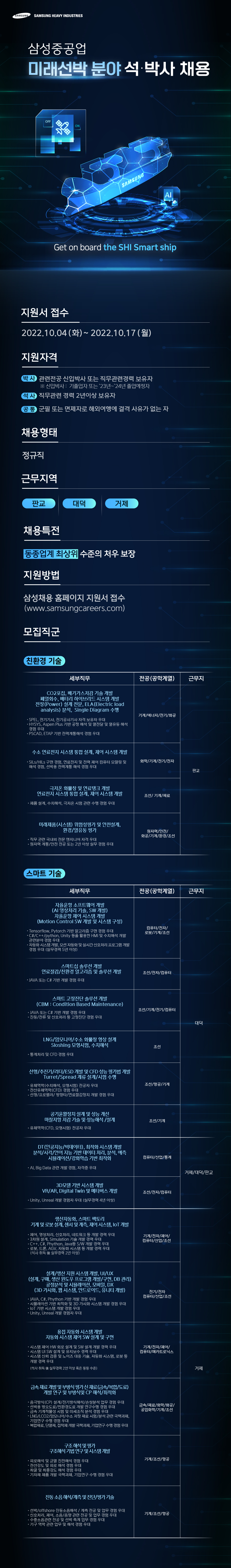 [삼성중공업] '22 하반기 미래선박 분야 석/박사 모집