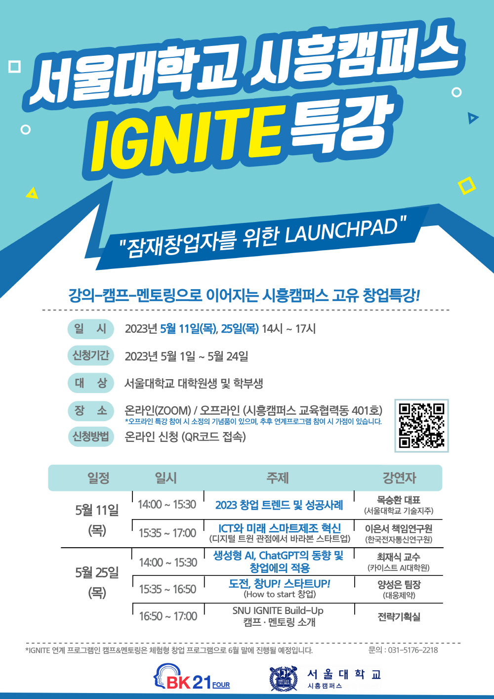 서울대학교 시흥캠퍼스 SNU IGNITE 특강 홍보