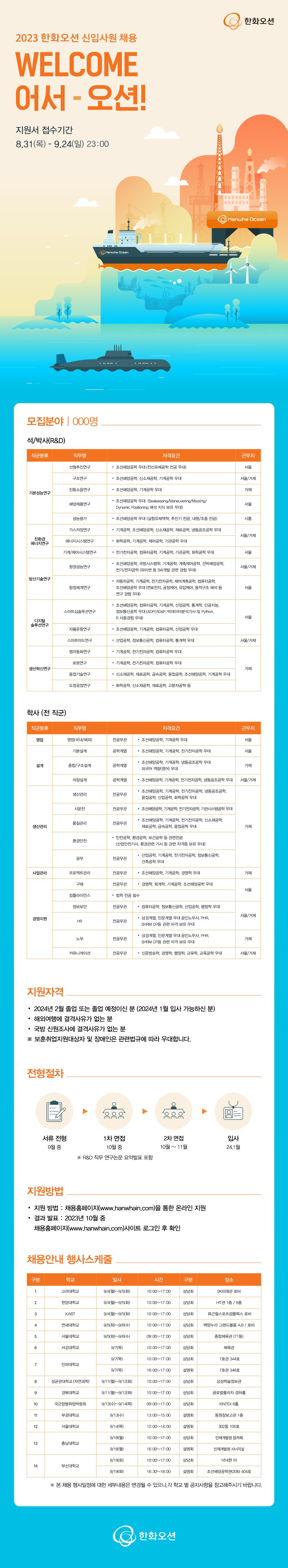 [한화오션] 2023년 하반기 한화오션 신입사원 채용 (~9/24)