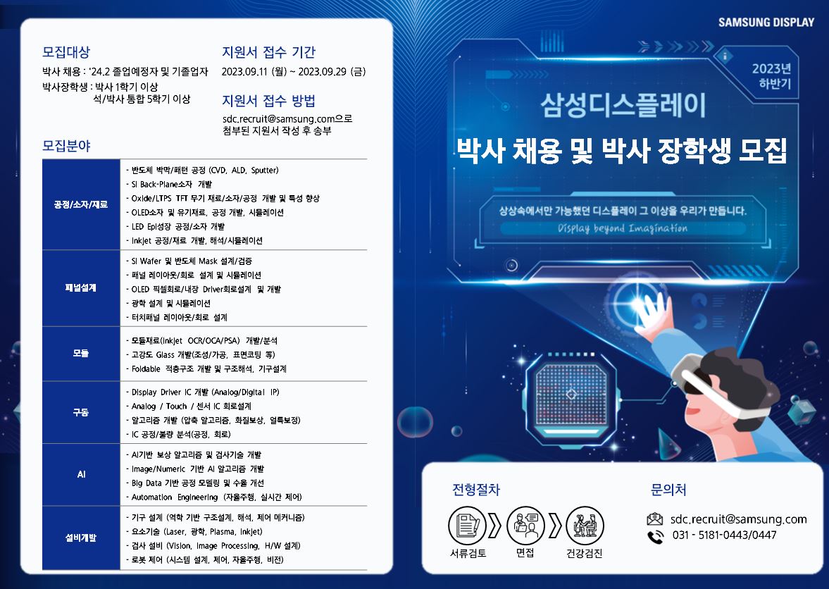 2023년도 하반기 삼성디스플레이 박사채용 및 박사장학생 모집 안내
