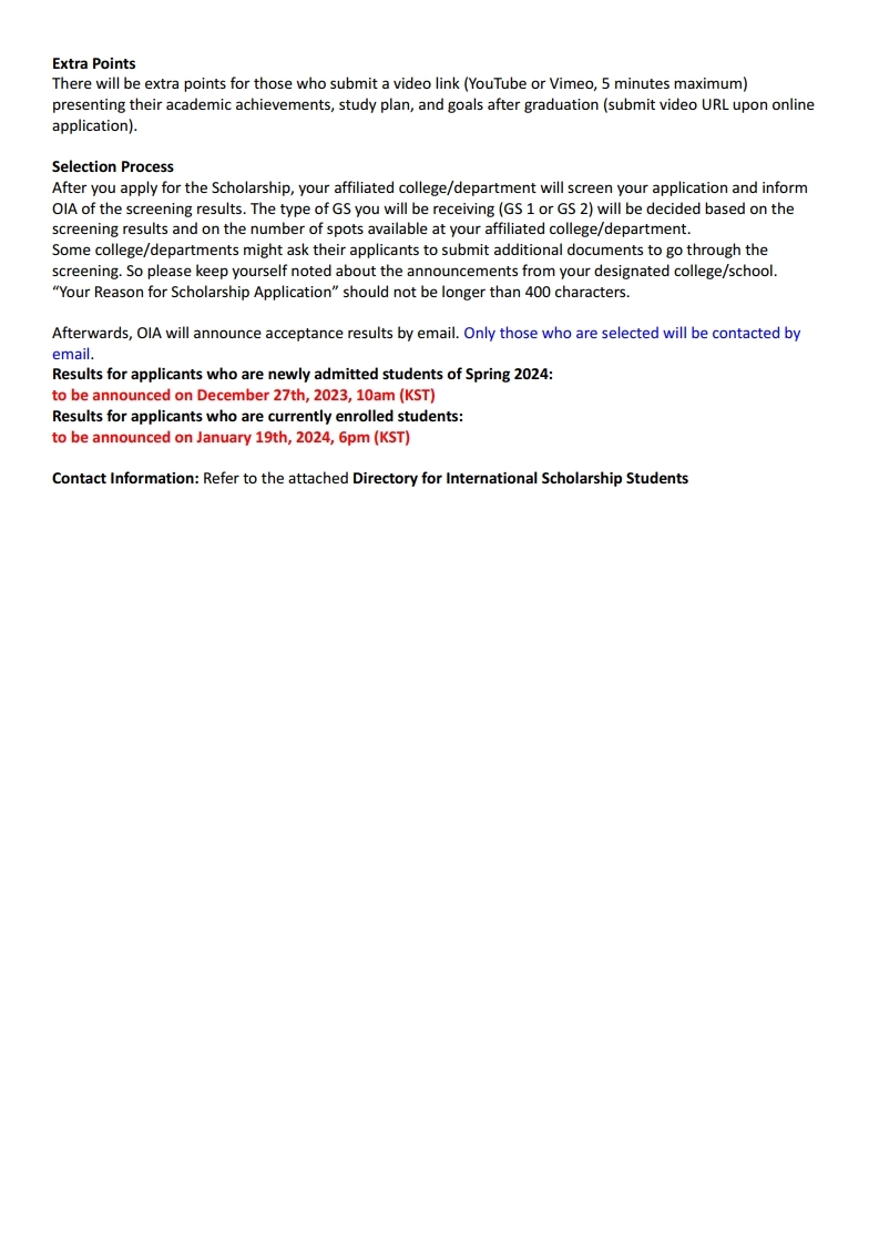 2024학년도 1학기 글로벌 초우수(SNU Global Scholarship, GS) 장학생을 아래와 같이 선발할 예정이오니 해당 학생들의 신청 바랍니다.