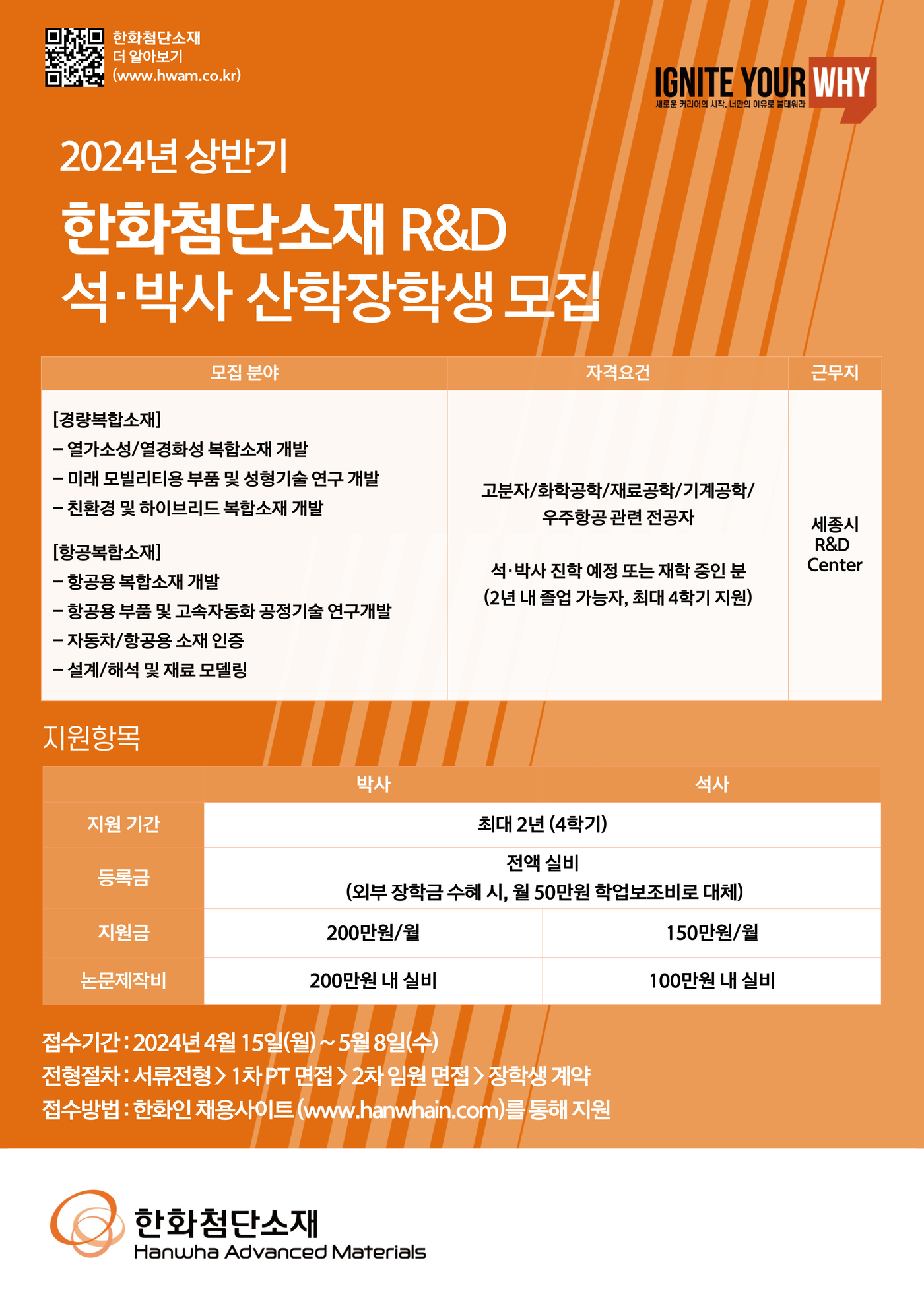 2024년도 상반기 한화첨단소재 R&D 석∙박사 산학장학생 모집