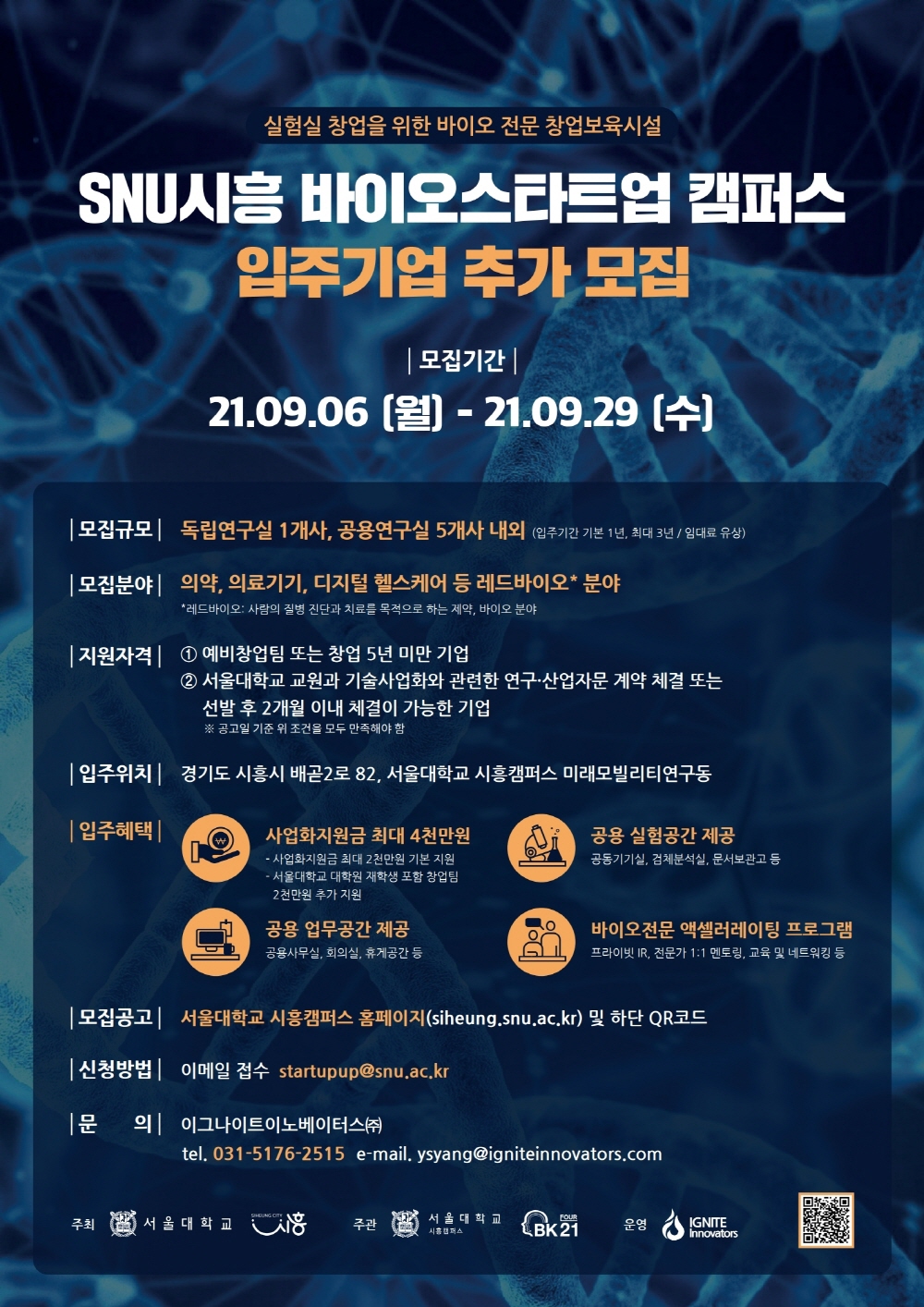 붙임 1.「SNU시흥 바이오스타트업 캠퍼스」입주기업 추가모집 포스터 1부.