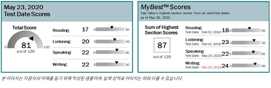 영역 중 응시일자가 가장 이른 Writing Section의 응시일자)에 해당하며, 이를 기준으
