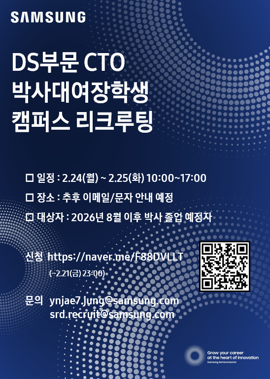 [삼성전자 DS부문 CTO(반도체연)] 서울대 박사대여장학생 캠퍼스 리크루팅