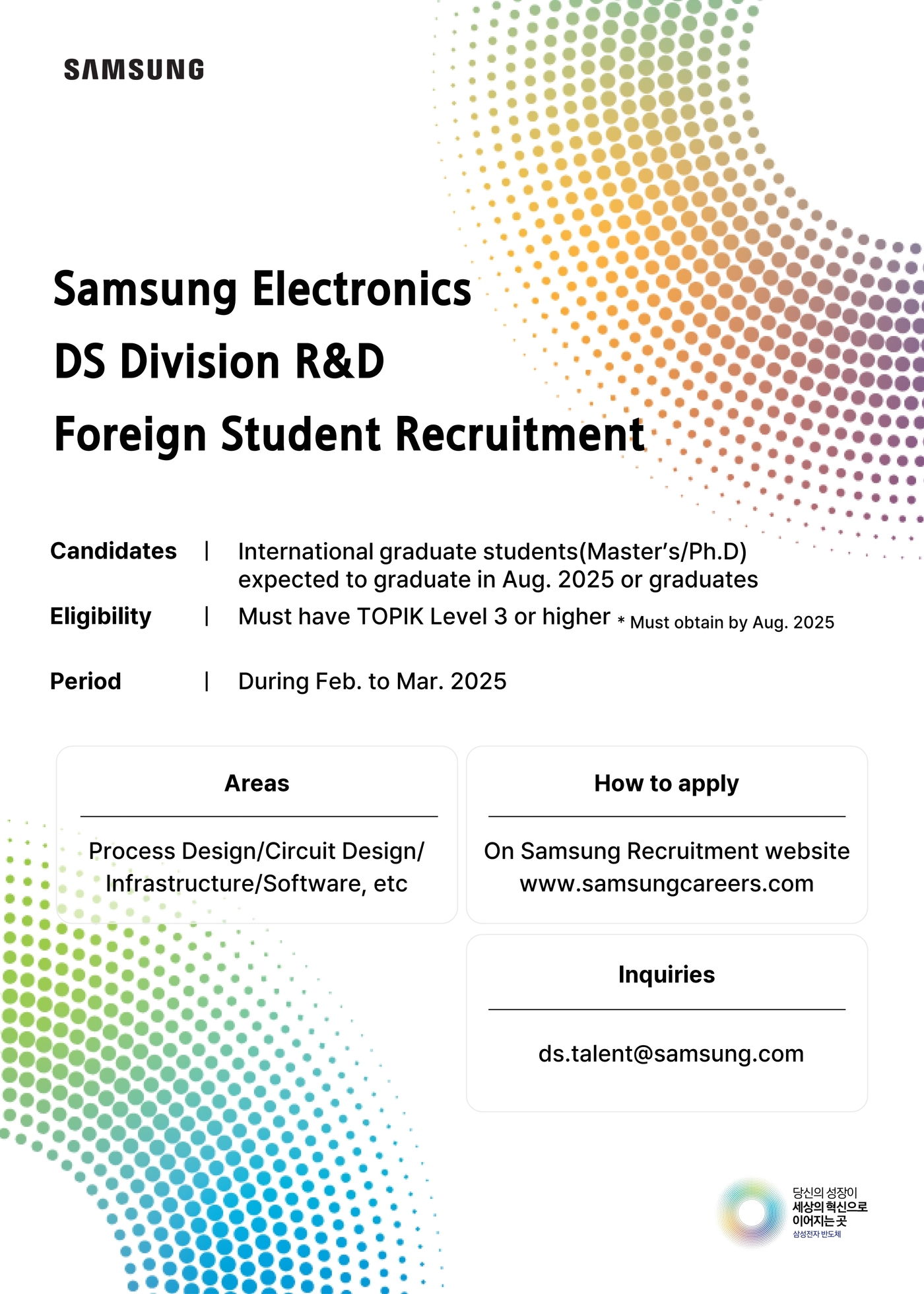 2025년 상반기 DS부문(반도체) 채용 공고에 따른 설명회를 개최합니다.