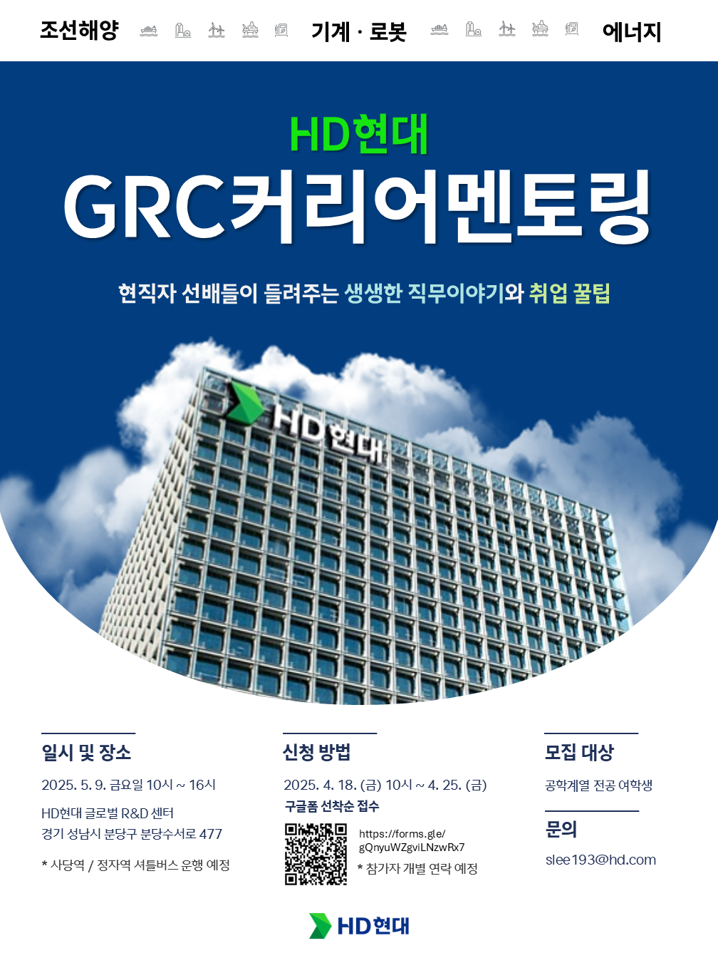 HD현대 GRC 커리어멘토링 행사 안내 (신청마감: 4/25, 금)
