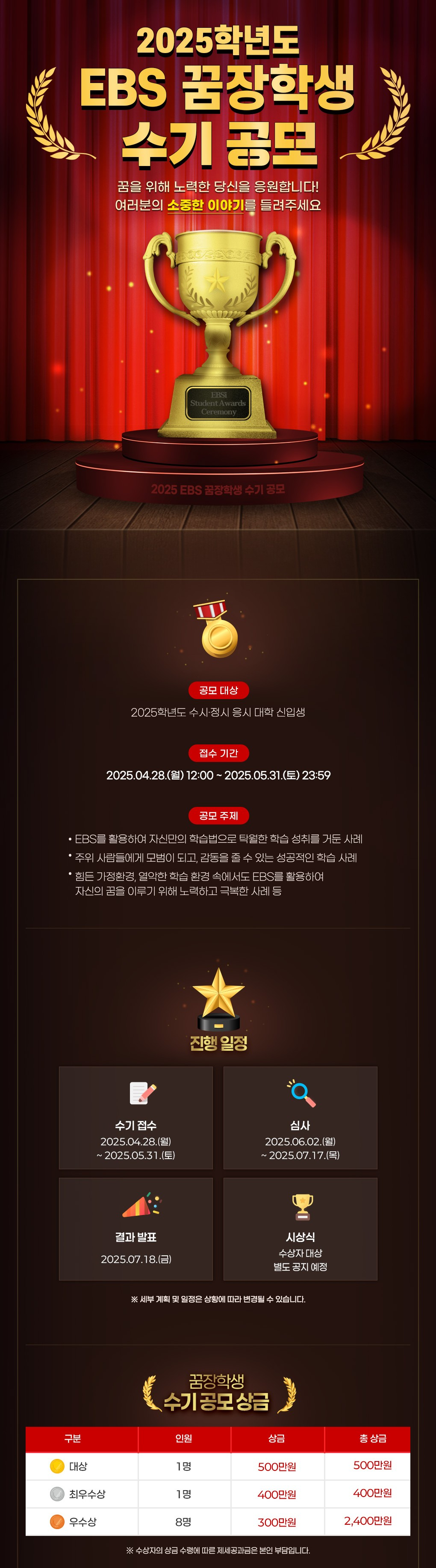 2025학년도 EBS 꿈장학생 수기 공모 (~5/31(토))