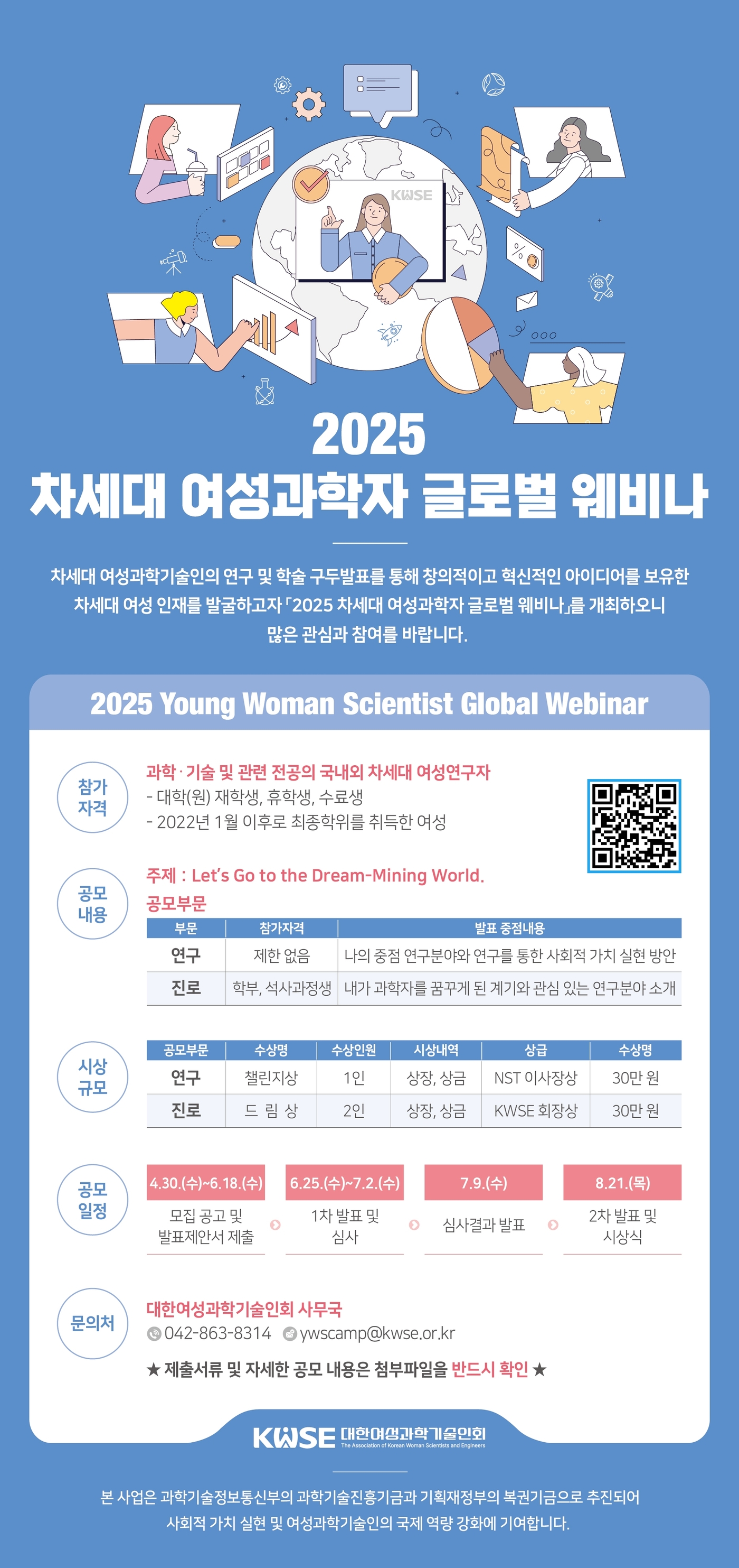 2025 차세대 여성과학자 글로벌 웨비나 공모전 (~6/18(수))