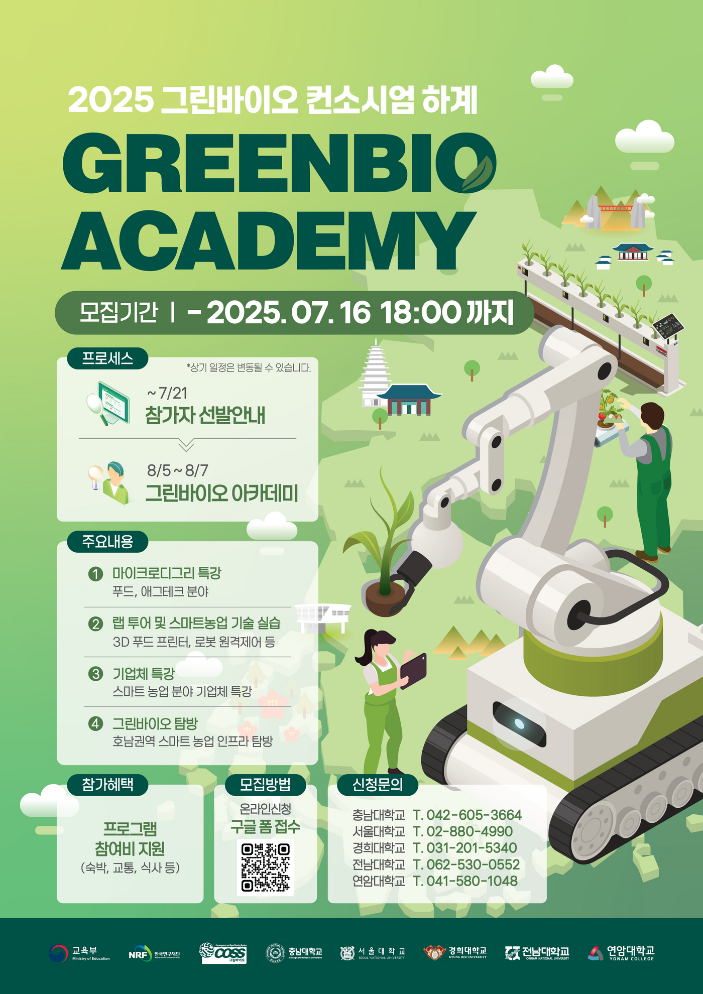 2025 그린바이오 컨소시엄 하계 GREENBIO ACADEMY 프로그램 홍보 (모집기간: ~7/16(수) 18시)