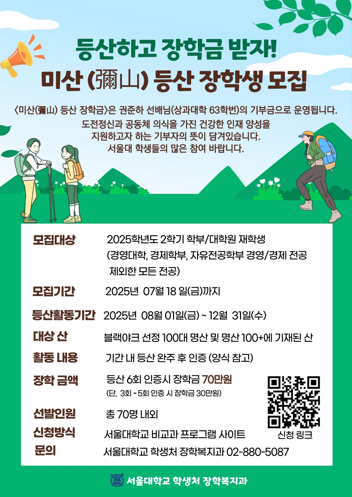 2025학년도 2학기 미산등산장학금 안내