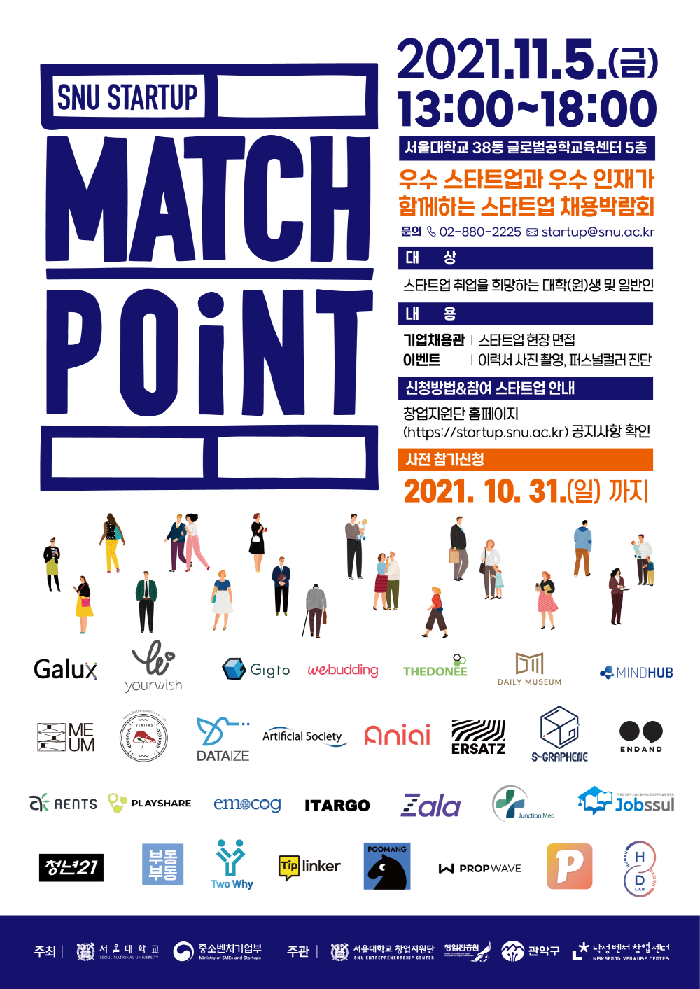 스타트업 인재채용박람회 'SNU STARTUP MATCH POINT(매치포인트)' 참가자를 모집하오니,
