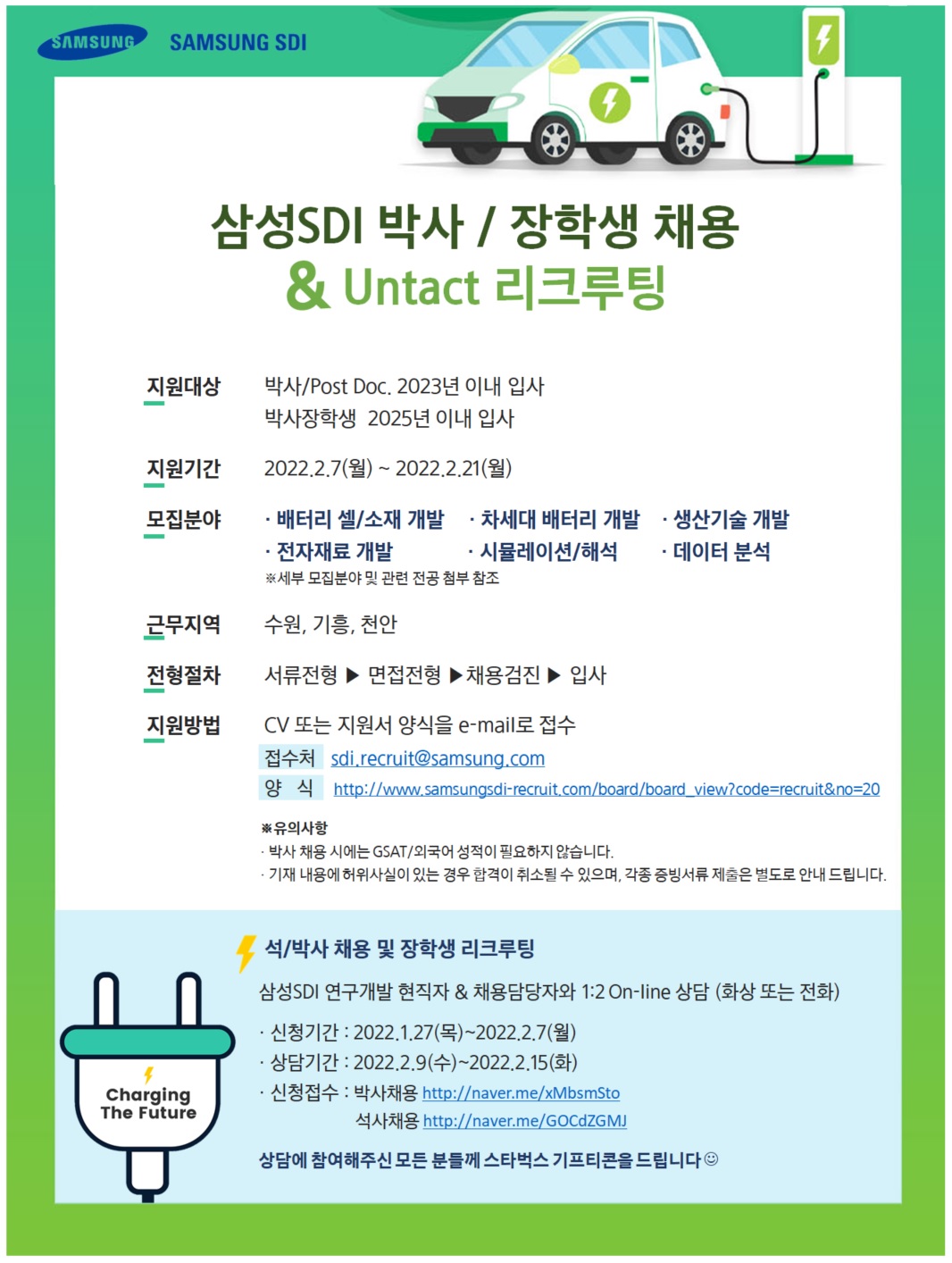 삼성SDI 2022 박사 및 장학생 채용공고_상반기