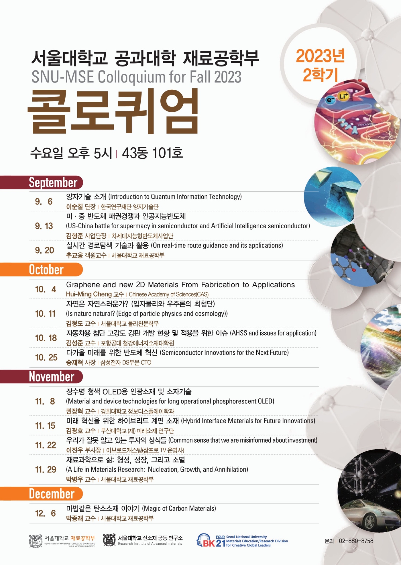재료공학부 2학기 콜로퀴엄 일정 안내