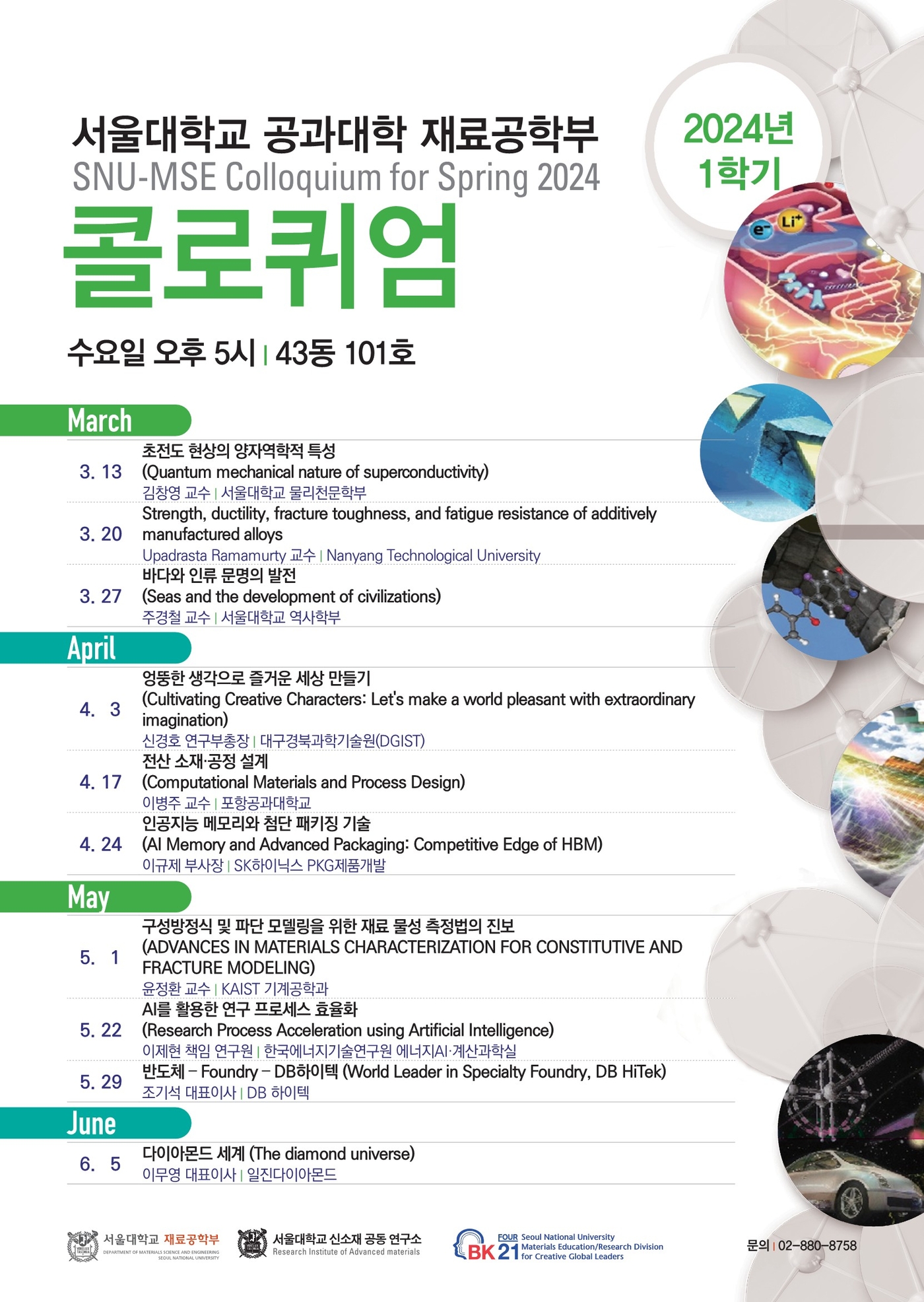 재료공학부 2024학년도 1학기 콜로퀴엄 일정 안내드립니다.