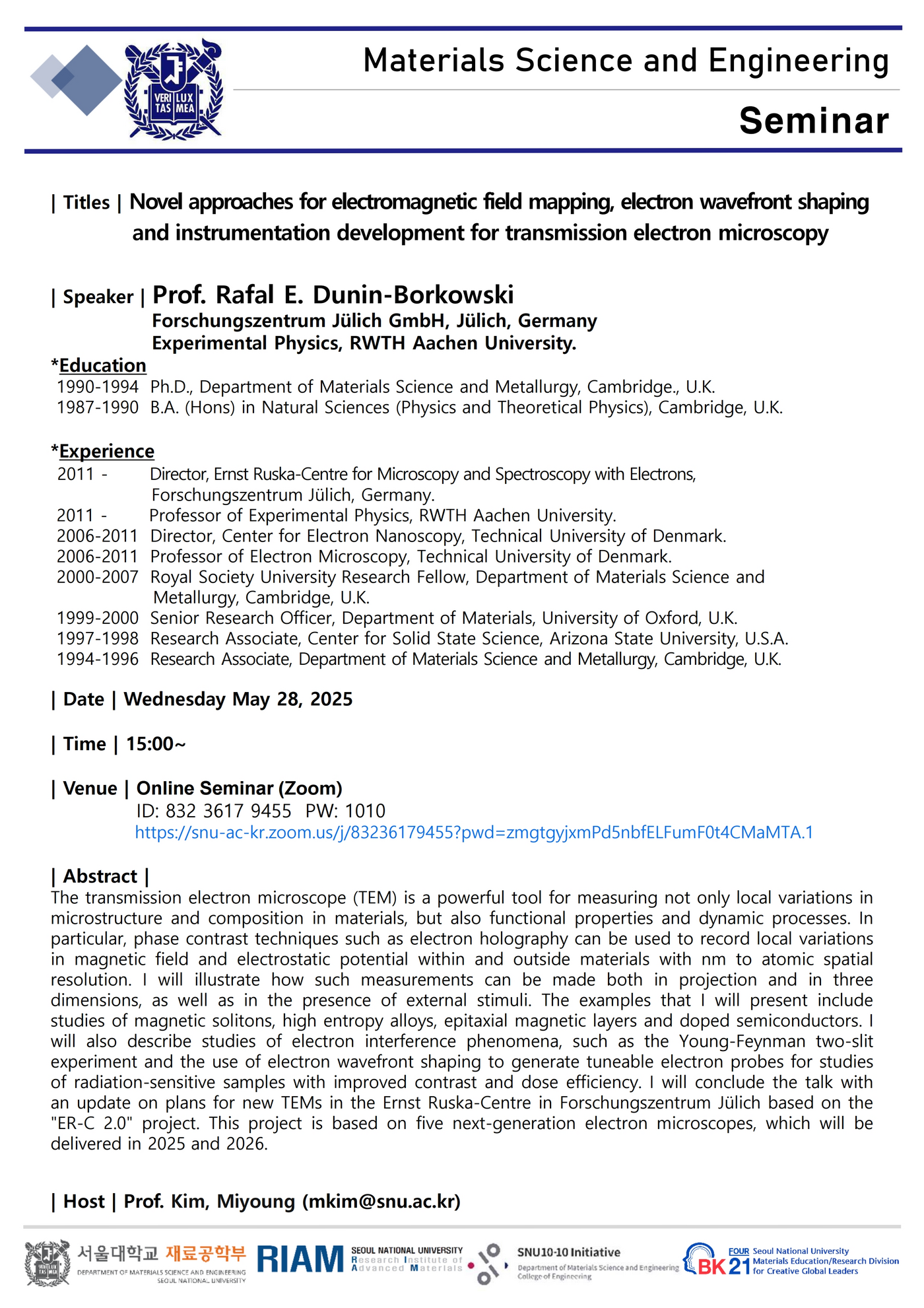 [세미나: 5월 28일(수), 오후 3시] Prof. Rafal E. Dunin-Borkowski (Forschungszentrum Jülich GmbH, Jülich, Germany)