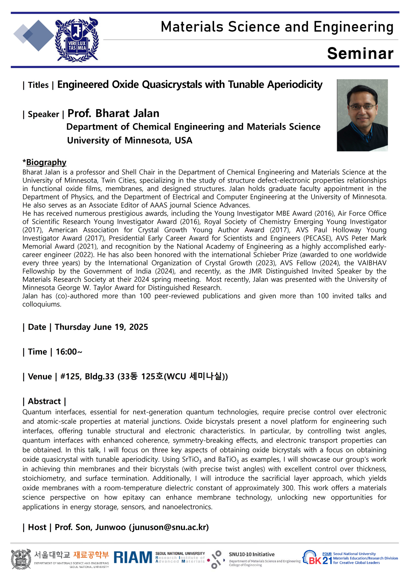 [세미나: 6월 19일(목), 오후 4시] Prof. Bharat Jalan (Department of Chemical Engineering and Materials Science, Univ. of Minnesota)