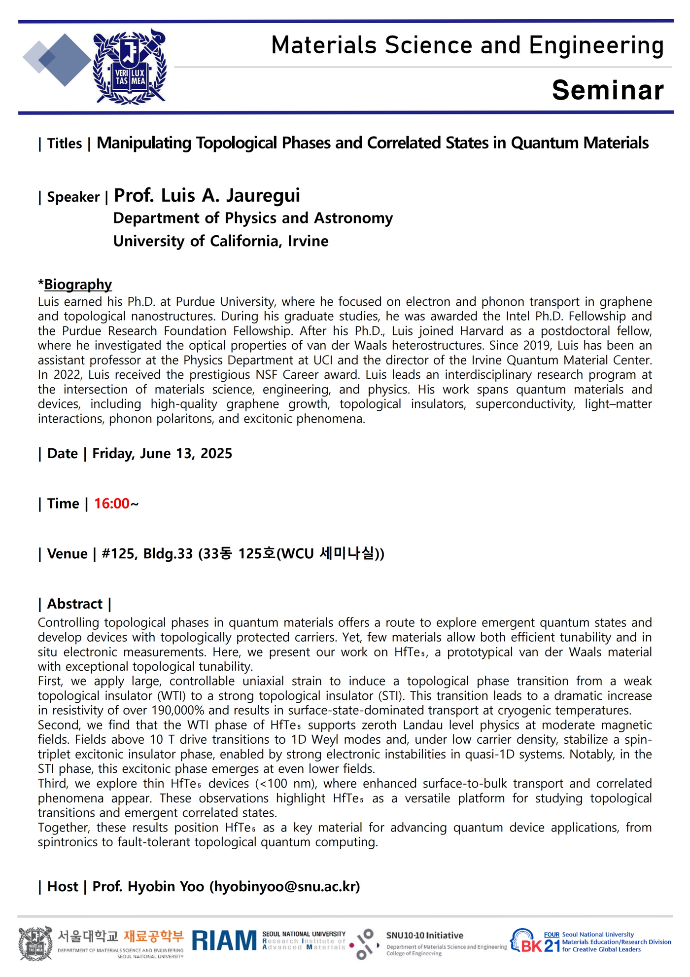 [세미나: 6월 13일(금), 오후 4시] Prof. Luis A. Jauregui (Department of Physics and Astronomy, University of California)