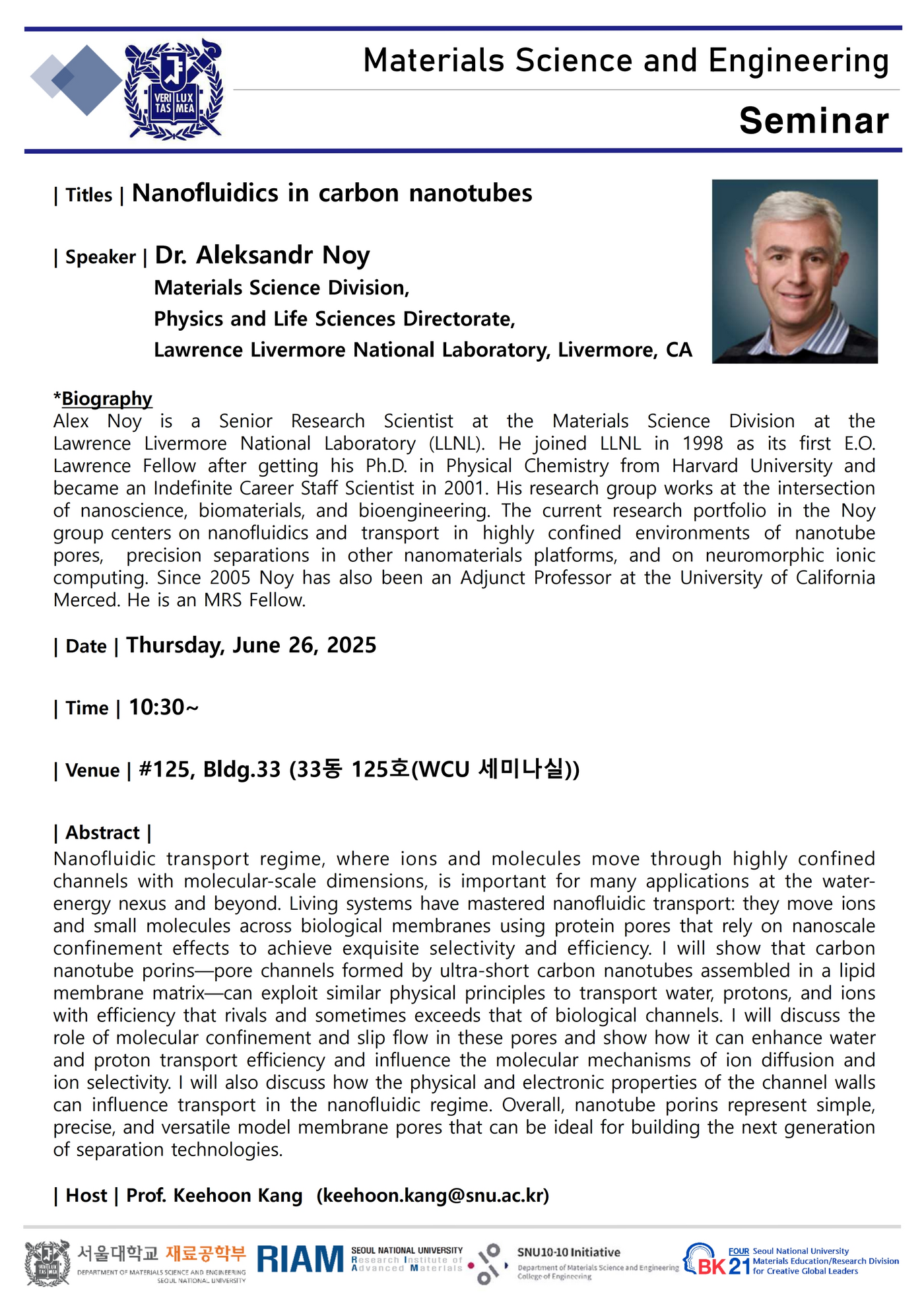 [세미나: 6월 26일(목), 오전 10시 30분] Dr. Aleksandr Noy (Lawrence Livermore National Laboratory)